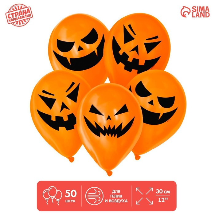 Шар латексный 12" «Страшные тыквы», 50 шт., МИКС