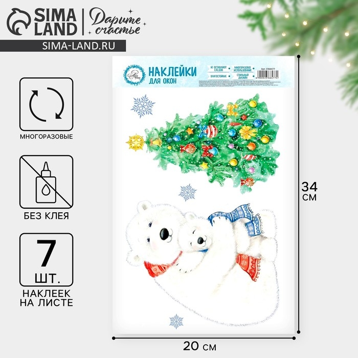 Наклейки новогодние на окна «Новогодняя ёлочка», многоразовые, 20 х 34 см, Новый год
