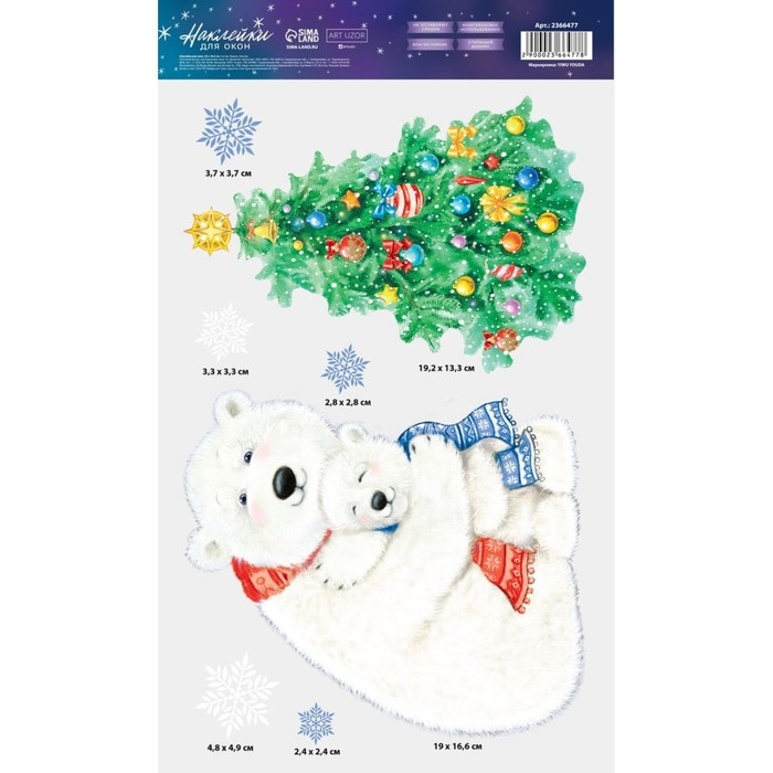Наклейки новогодние на окна «Снежные забавы», многоразовые, 20 х 34 см, Новый год