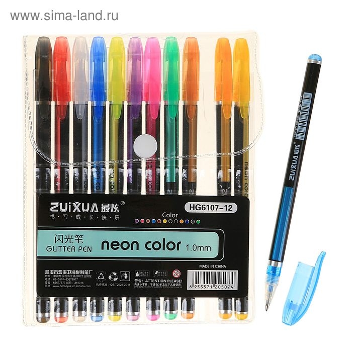 Набор гелевых ручек, 6 цветов, металлик, с блёстками, в блистере