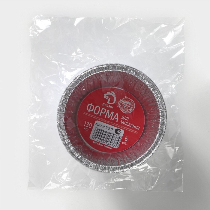 Набор форм из фольги для выпечки и запекания Доляна, 130 мл, d=8,5 см, 6 шт