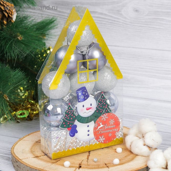 Набор украшений пластик 12 шт "Подарок" (9 шаров, 3 подарка) серебро