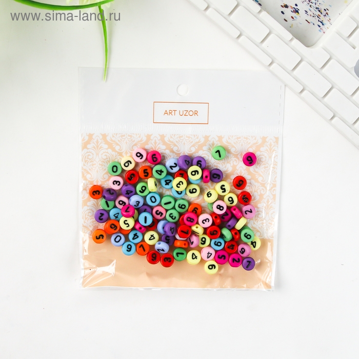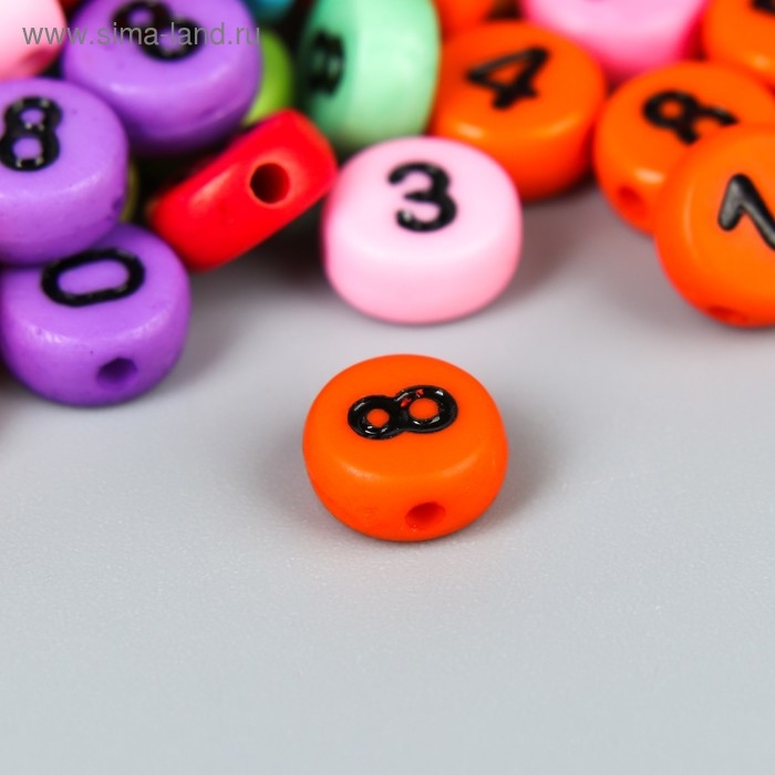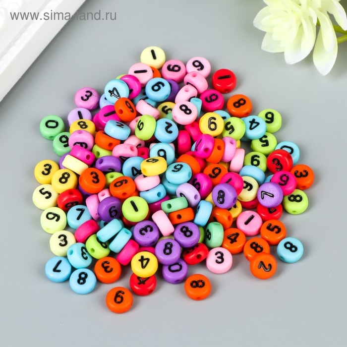 Бусины для творчества пластик "Разноцветные цифры" набор 20 гр 0,7х0,7 см