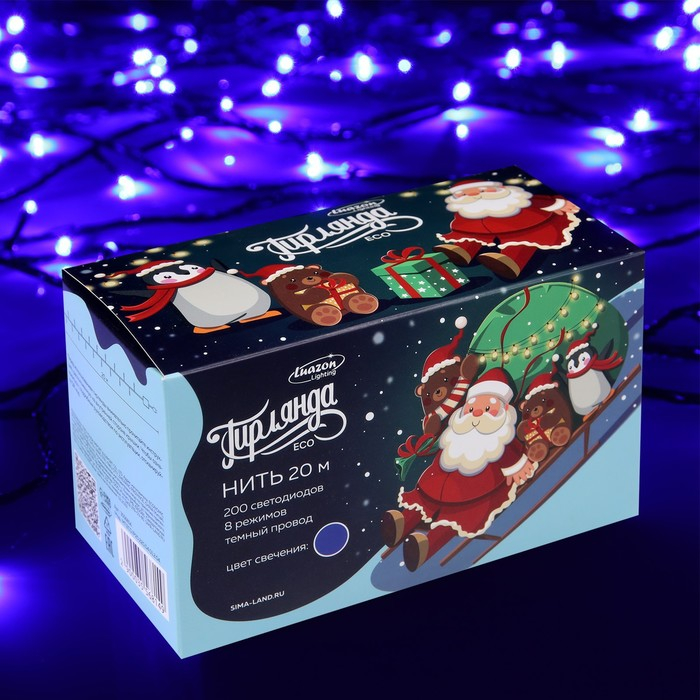 Гирлянда «Нить» 20 м, IP20, тёмная нить, 200 LED, свечение синее, 8 режимов, 220 В