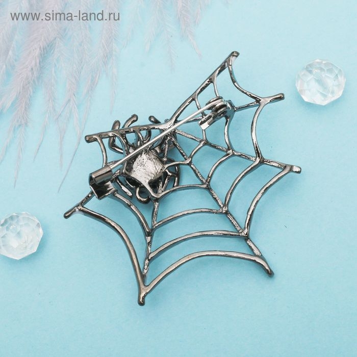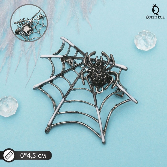 Брошь «Паук в паутине», цвет черно-белый в серебре