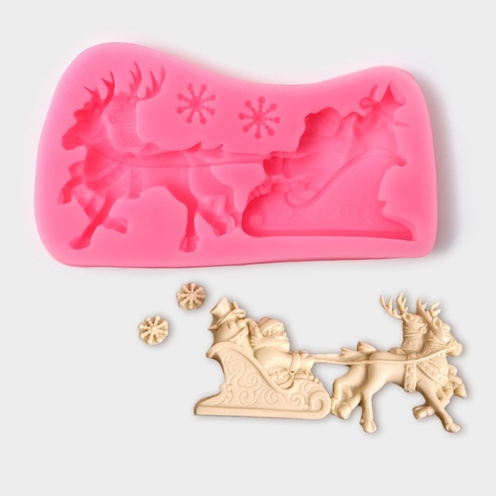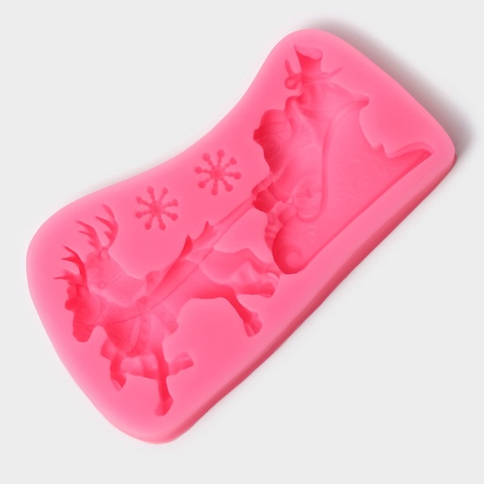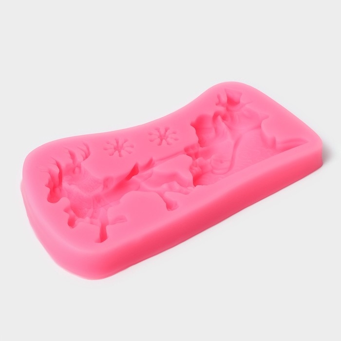 Молд новогодний «Упряжка», силикон, 13×7,5×1,2 см, цвет розовый
