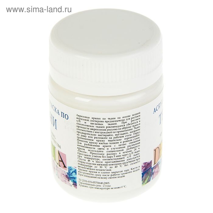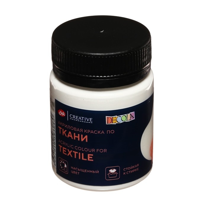 Краска по ткани, банка 50 мл, ЗХК Decola, Белая 4128104, (акриловая на водной основе)