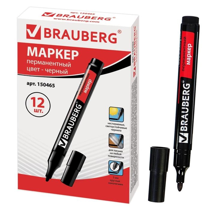Маркер перманентный 3.0 мм BRAUBERG Contract, чёрный, нестираемый