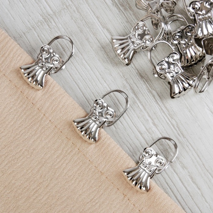 Крючок для штор, 70 × 25 мм, 10 шт, цвет серебряный