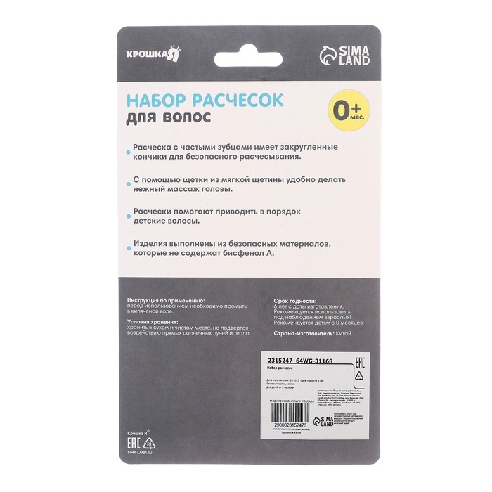 Расческа-щетка с мягкой щетиной и удобная расческа с закругленными зубчиками предназначены для малышей с первых дней жизни.