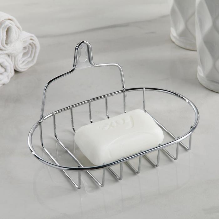 Мыльница подвесная овальная Доляна, 13,5×10,5×8 см, цвет серебристый