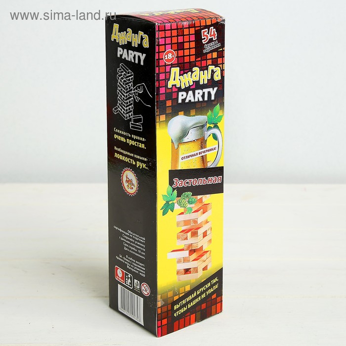 Падающая башня дженга, настольная игра, "Вечеринка", 54 бруска с заданиями, 30 х 8 см