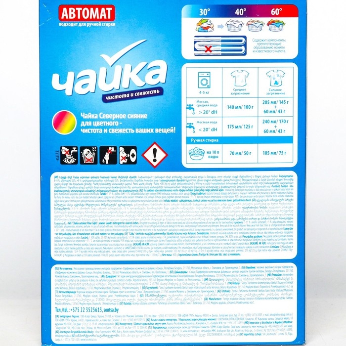 Средство для стирки цветного белья Чайка Северное сияние эффективно отстирывает цветные вещи, обеспечивая сохранность цвета и бережное отношение к ткани.