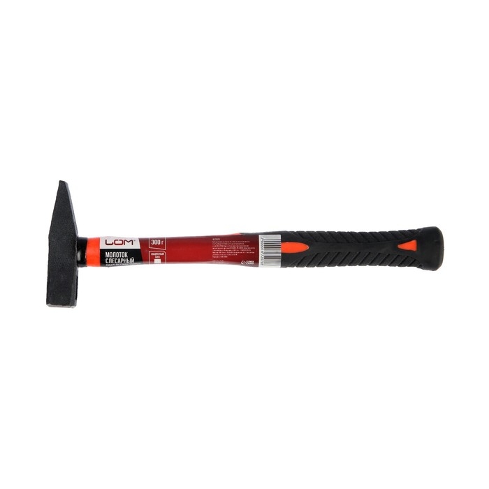 Молоток слесарный ЛОМ, квадратный боек, фиберглассовая обрезиненная рукоятка, 300 г