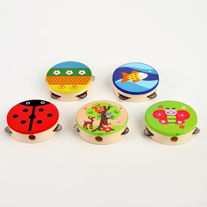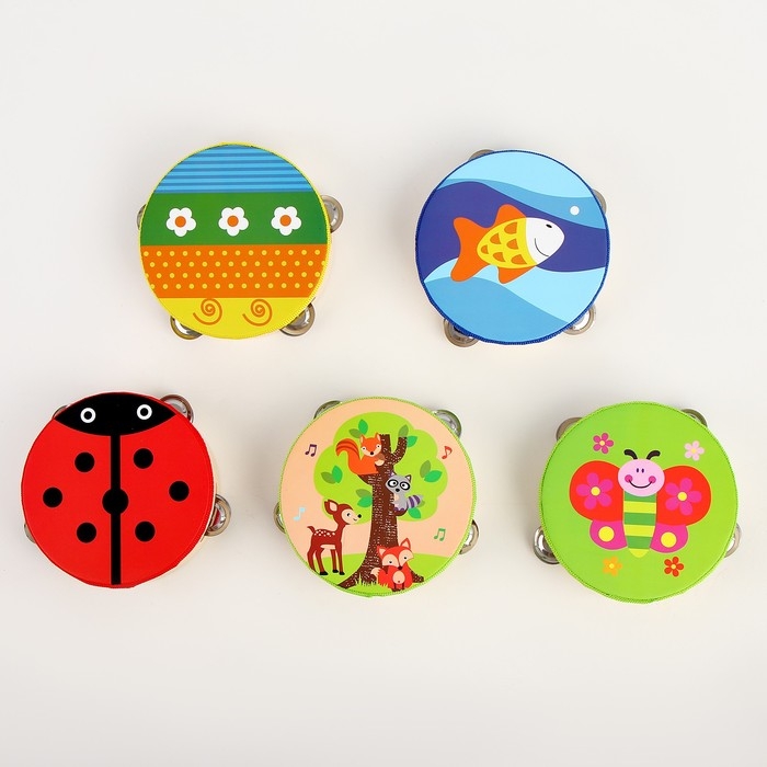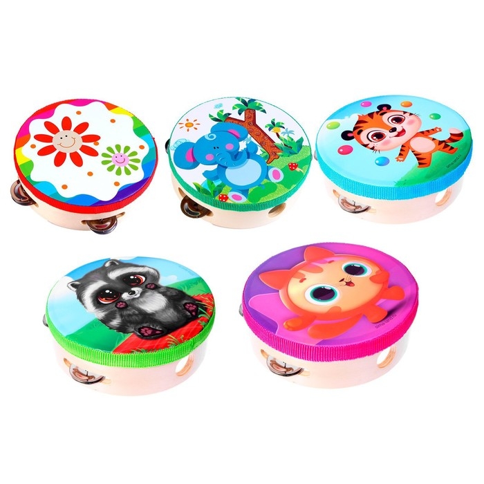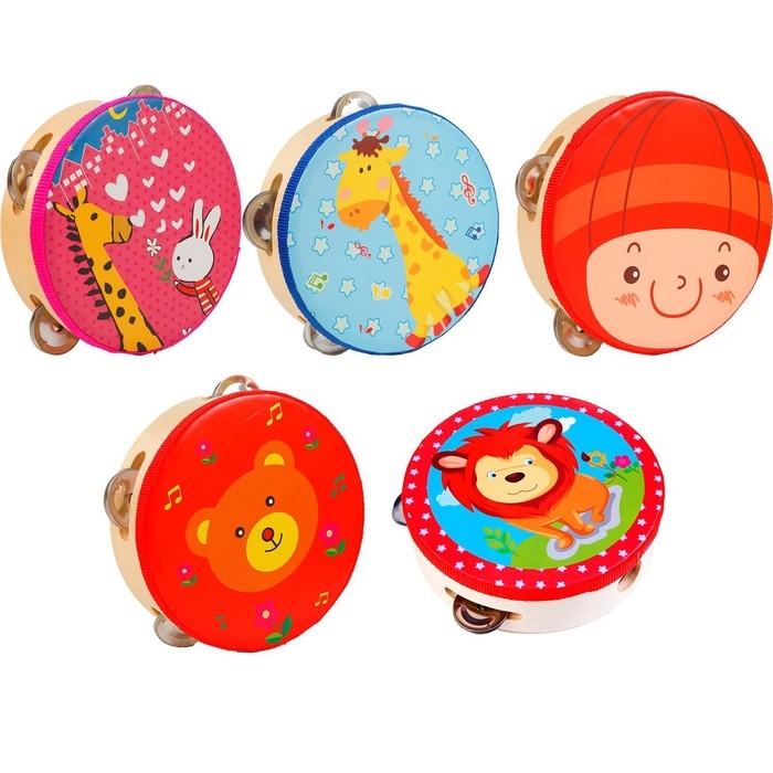 Яркий бубен с улыбчивыми персонажами — это первый шаг малыша в мире музыки. Он позволит ребёнку окунуться в процесс создания мелодий, нужно только встряхнуть игрушку.