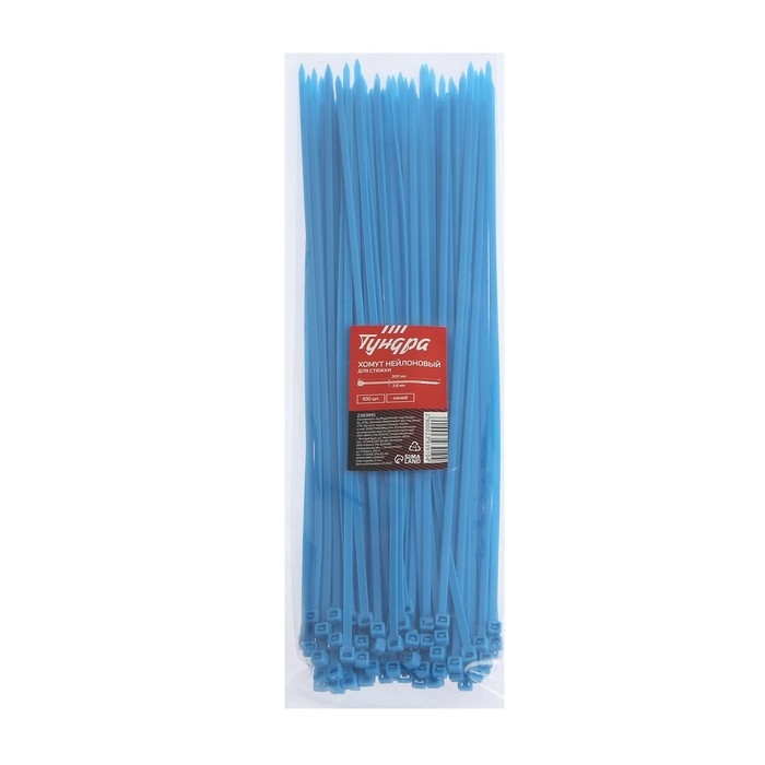 Хомут нейлоновый пластик ТУНДРА krep, для стяжки, 3.6х300 мм, цвет синий, в уп. 100 шт