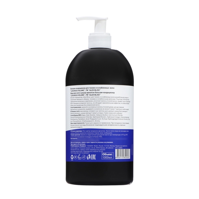 Бальзам-кондиционер Alex Bliss Роскошный объем создан на основе тщательно подобранных натуральных активных компонентов, ухаживающих за волосами.
