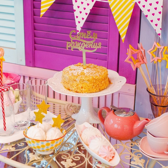 Топпер для торта «С днём рождения», акрил, цвет золотой