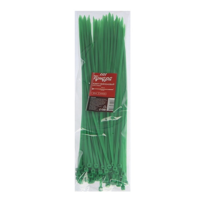 Хомут нейлоновый ТУНДРА krep, для стяжки, 3.6х300 мм, цвет зеленый, в упаковке 100 шт.