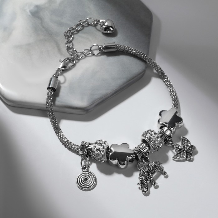 Браслет ассорти «Марджери» символы удачи, цвет белый в серебре, L=18 см
