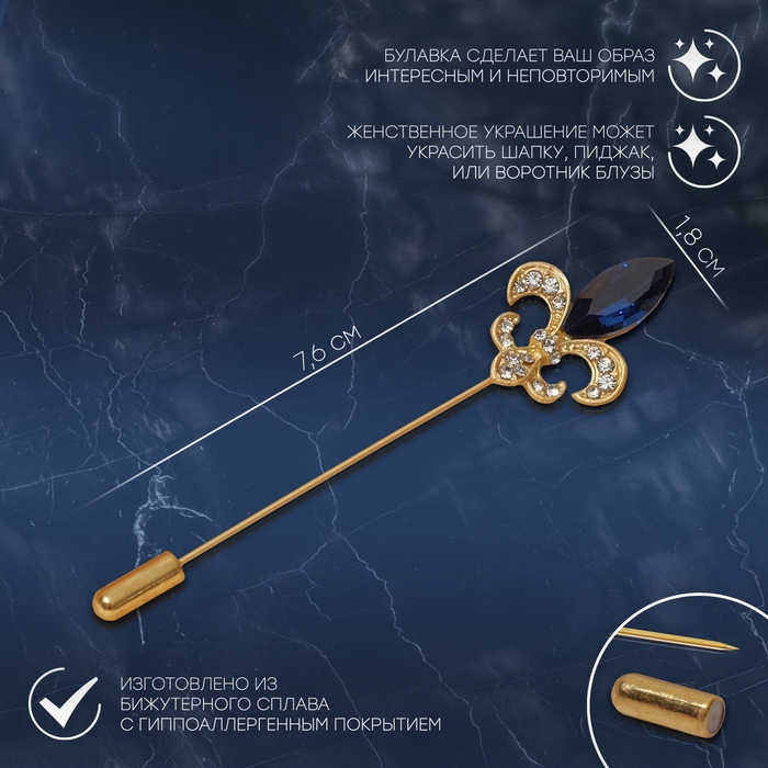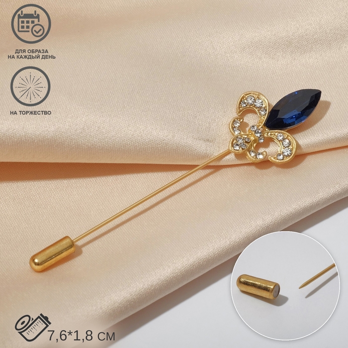 Булавка «Лилия королевская» 7,6см, цвет бело-синий в матовом золоте