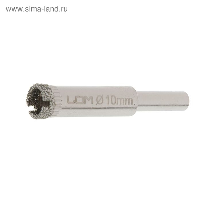 Сверло алмазное по стеклу и керамике ЛОМ, цилиндрический хвостовик, 10×55 мм