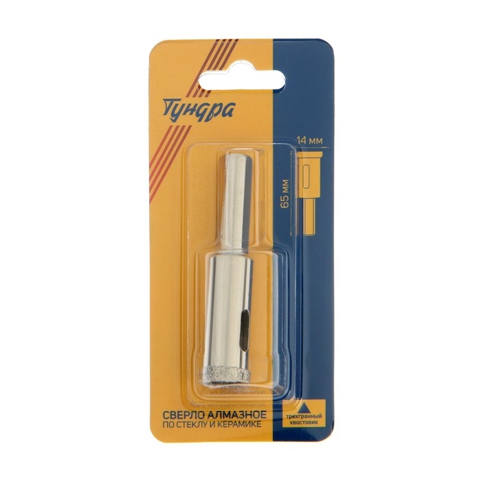 Сверло алмазное по стеклу и керамике ТУНДРА, трехгранный хвостовик, 14 х 65 мм