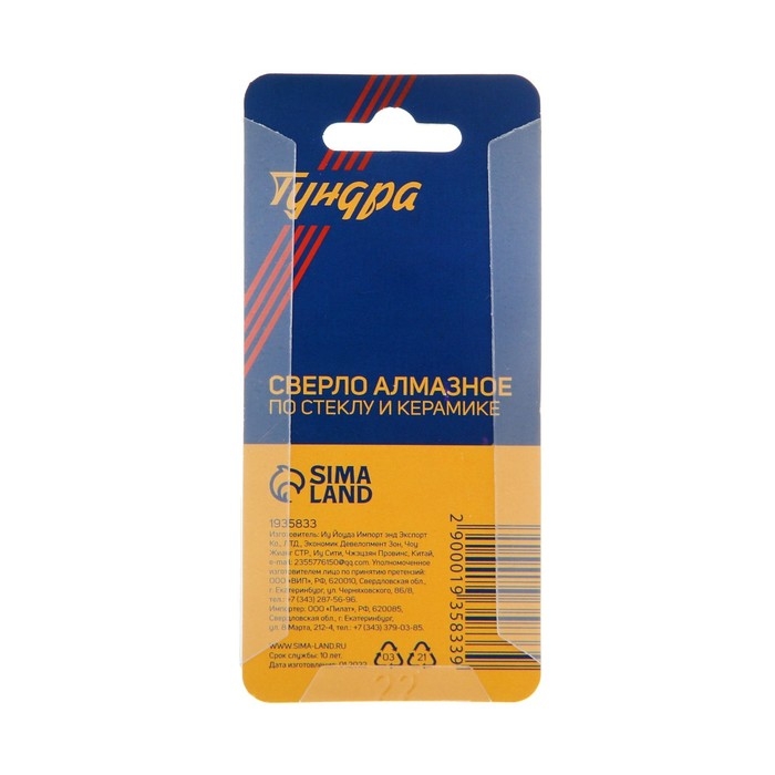 Сверло алмазное по стеклу и керамике с трехгранным хвостовиком ТУНДРА предназначено для совместного использования с дрелью.