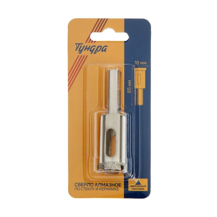Сверло алмазное по стеклу и керамике ТУНДРА, трехгранный хвостовик, 18 х 65 мм