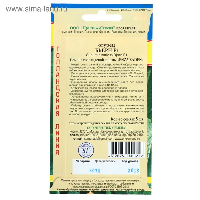 Семена Огурец Герман F1 самоопыляемый, 7 шт