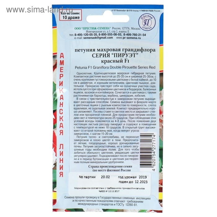 Семена цветов Петуния махровая грандифлора "Пирует" Красный F1, О, драже 5 шт