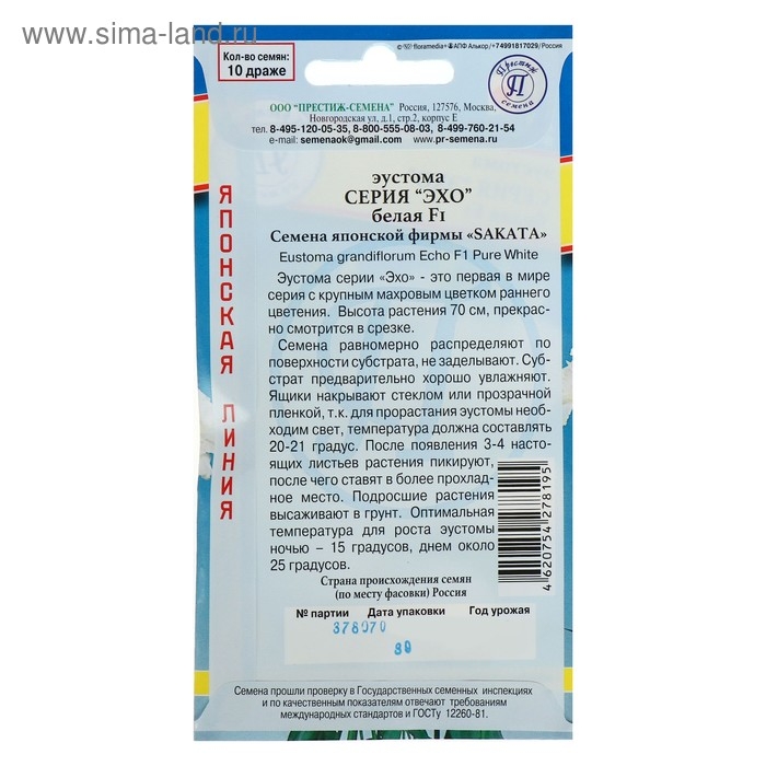 Семена цветов Эустома "Эхо" Белая F1, О, драже 10 шт