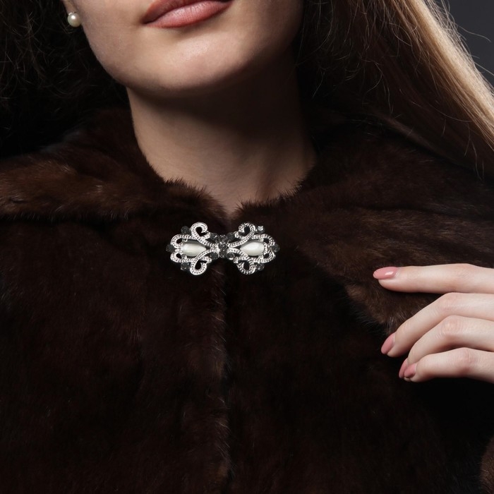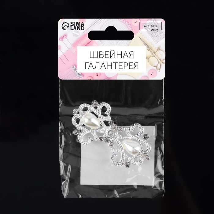 Декоративная застёжка «Узор», 6,5 × 3,5 см, цвет белый