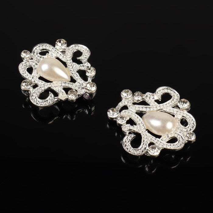 Декоративная застёжка, d = 2,5/3 см, цвет серебряный/белый
