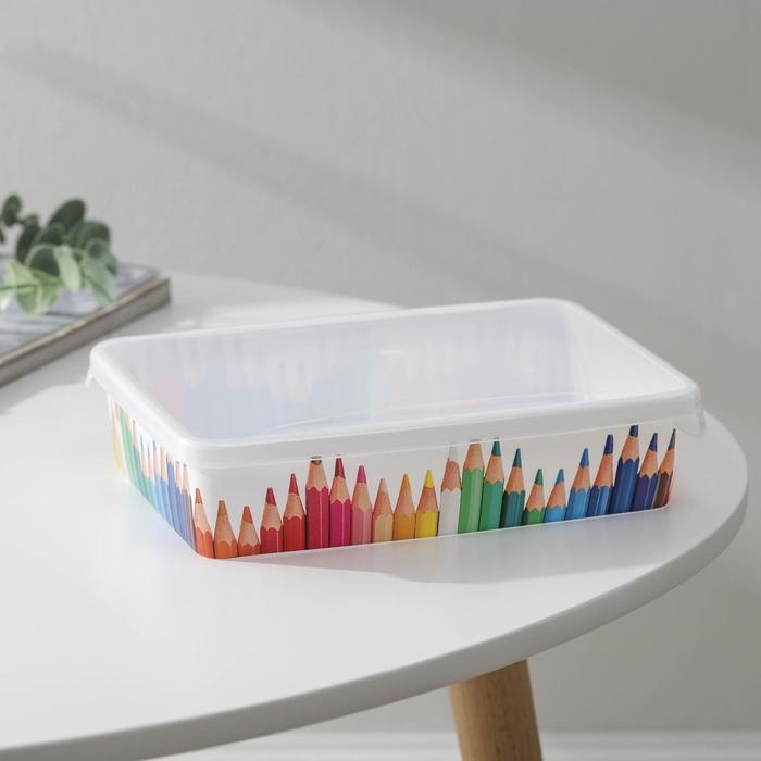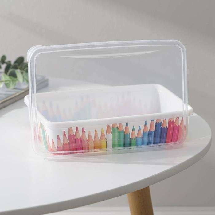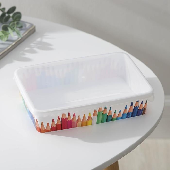 Корзина для хранения с крышкой «Карандаши», 20,5×14×4,6 см, цвет белый