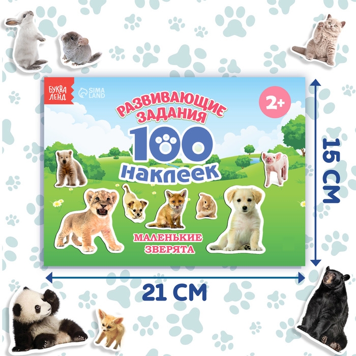 Книга с наклейками «Маленькие зверята», 100 наклеек