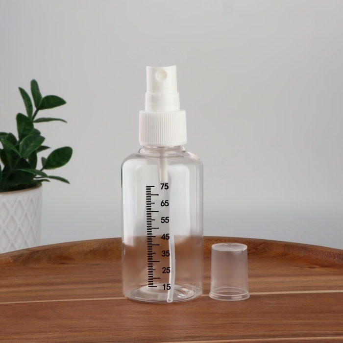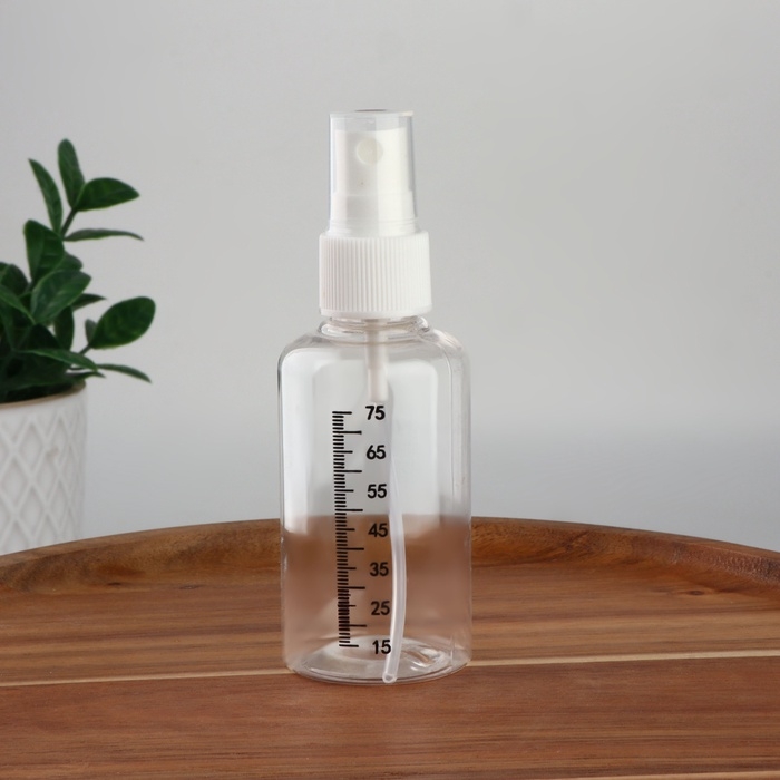 Бутылочка для хранения, с распылителем, со шкалой деления, 75 мл, цвет белый/прозрачный