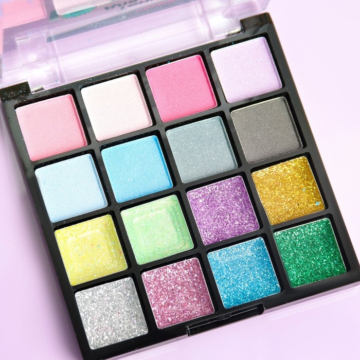 Набор теней детских для век 16 цв, 8 с блёстками, 8 матовые