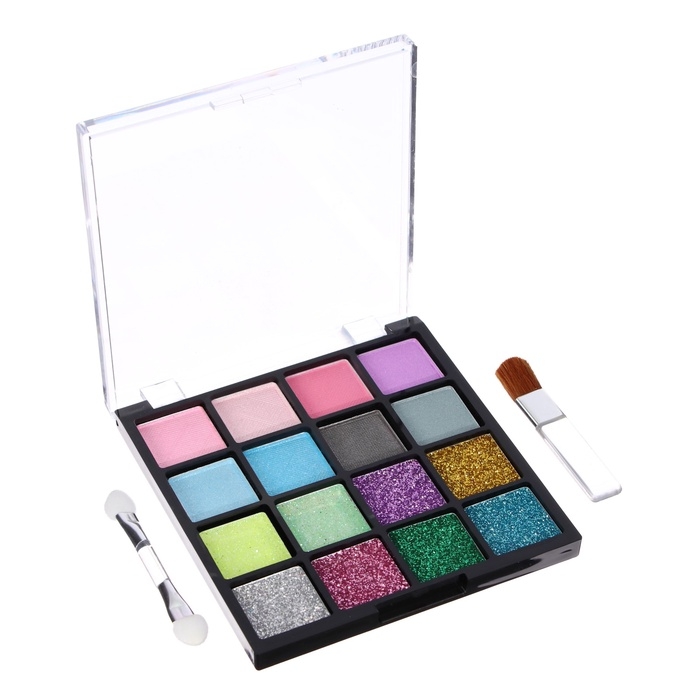 Набор теней детских для век 16 цв, 8 с блёстками, 8 матовые