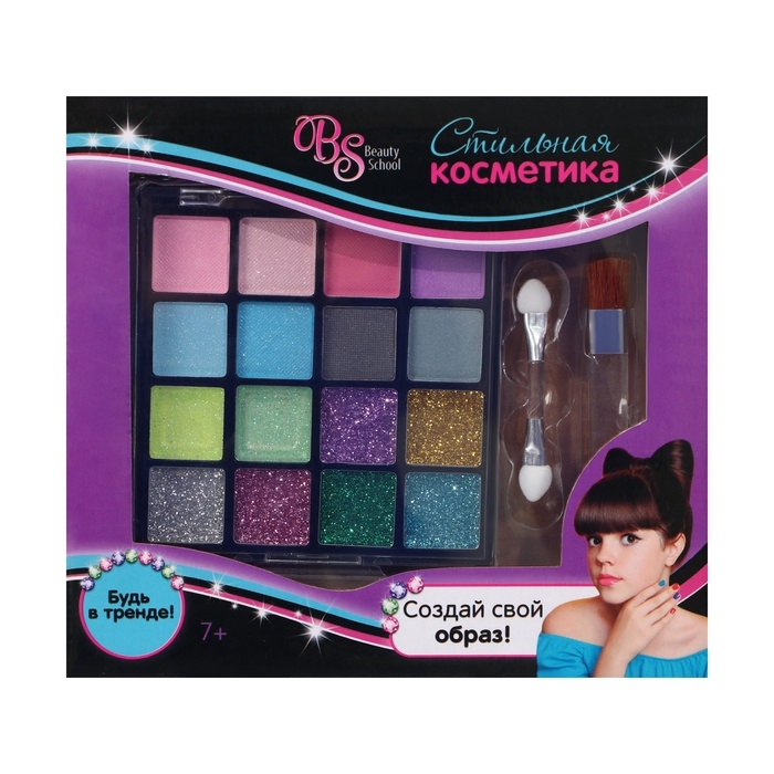 Набор косметики для девочки: тени, кисть, аппликатор