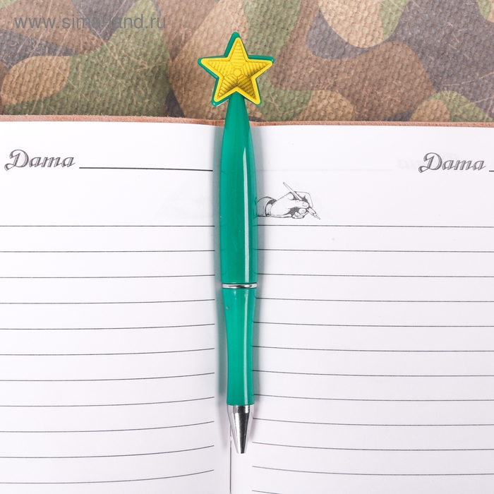 Ручка шариковая синяя паста, пластиковая со звездой "С 23 Февраля"