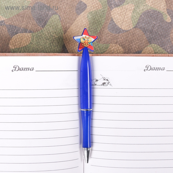 Ручка шариковая синяя паста, пластиковая со звездой "Служу России"