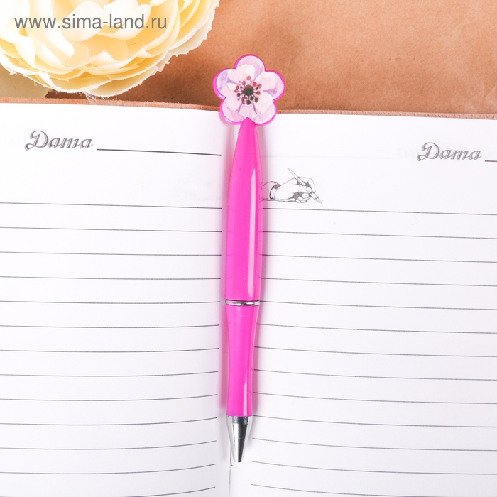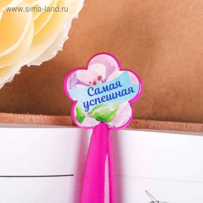 Ручка шариковая синяя паста, пластиковая с цветком "Удачи в делах"