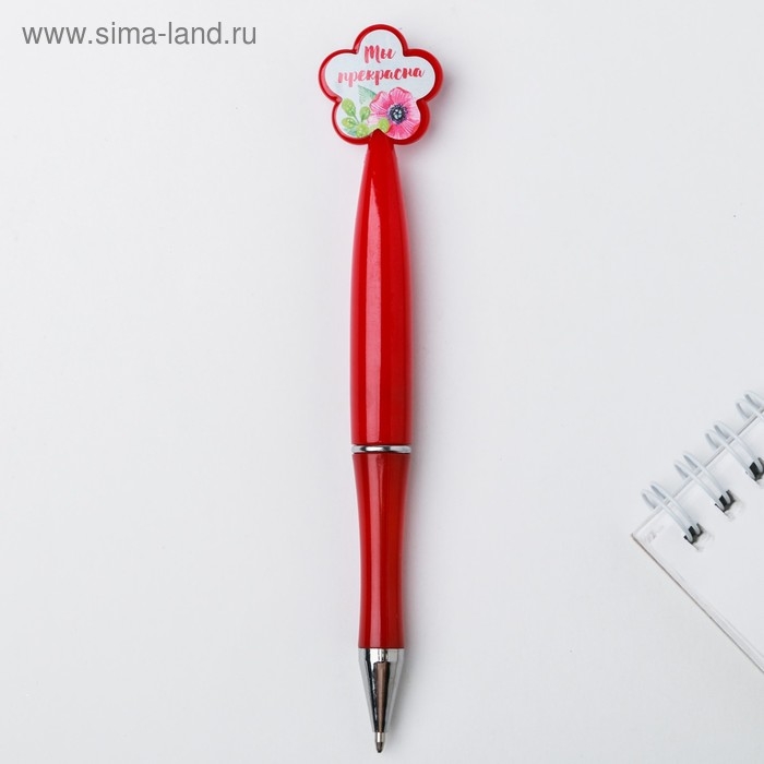 Ручка шариковая синяя паста, пластиковая с цветком "С 8 Марта"