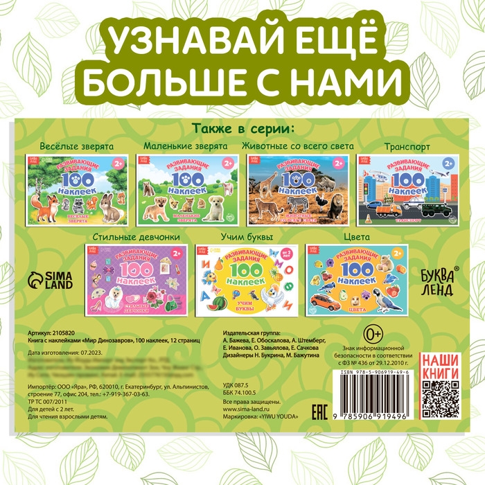 В альбоме представлено 100 наклеек с красочными изображениями динозавров, моллюсков и других животных, ранее обитавших на нашей планете. Яркие картинки положительно влияют на визуальное восприятие малыша, память и воображение.