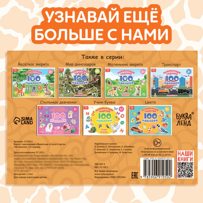 100 наклеек «Животные со всего света», 12 стр.