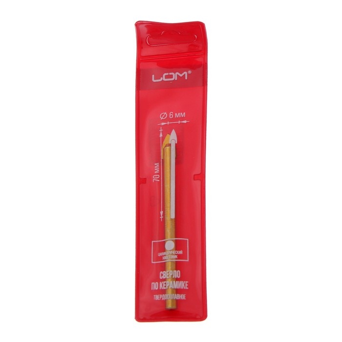 Сверло по керамике твердосплавное ЛОМ, цилиндрический хвостовик, 6 мм