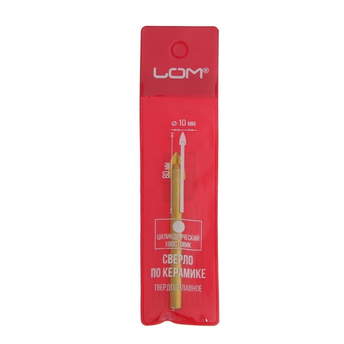 Сверло по керамике твердосплавное ЛОМ, цилиндрический хвостовик, 10 мм