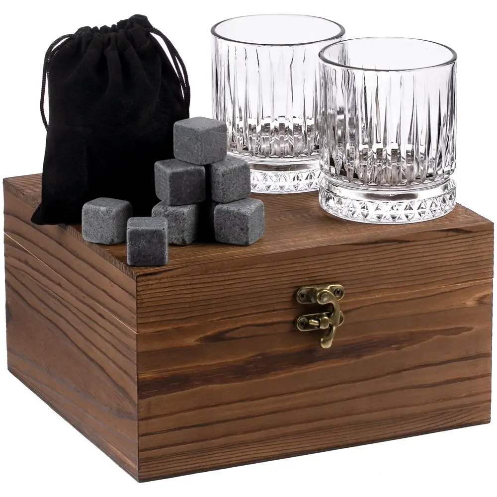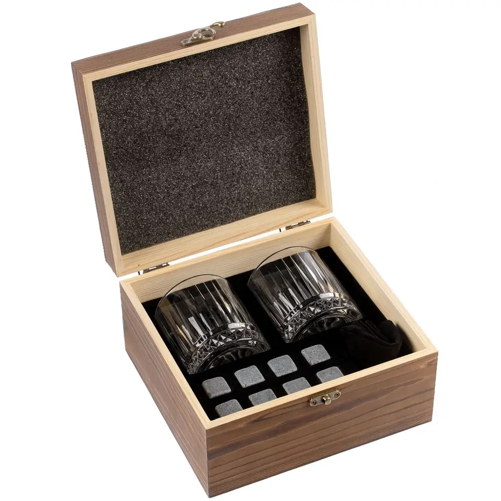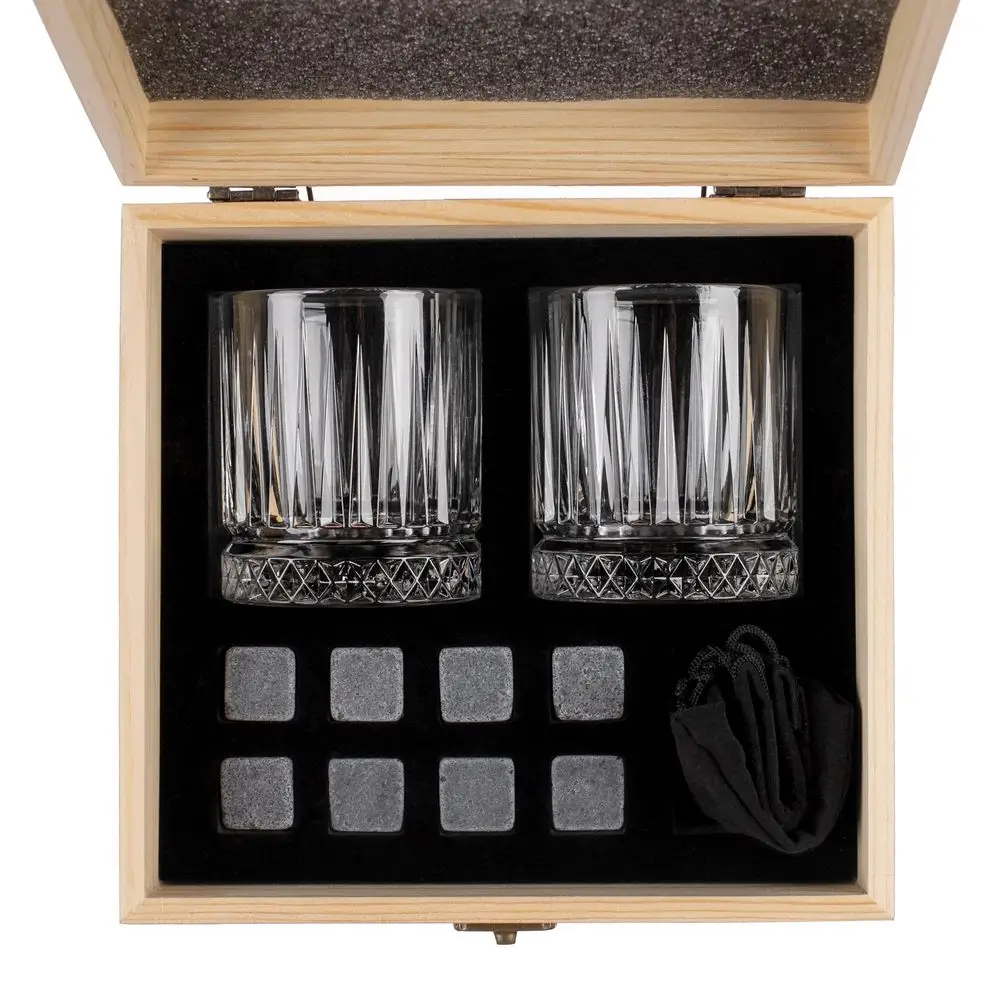 Благодаря высокой теплоемкости и теплопроводности камни охлаждают гораздо лучше льда и при этом не тают, а значит, не разбавят напиток и не изменят его вкусовых свойств.В наборе: 2 стакана (210 мл), 8 камней для виски, мешочек для камней.