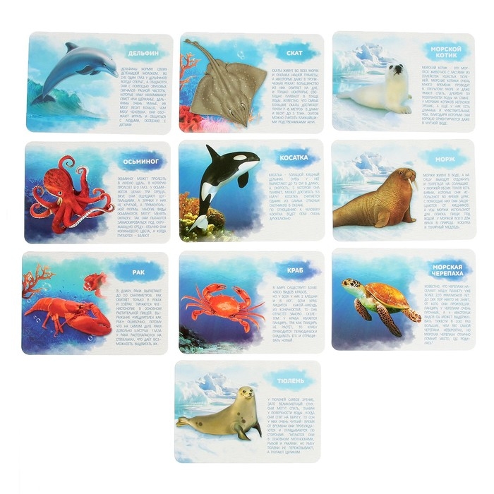 Набор фигурок животных для детей с обучающими карточками «Подводный мир», карточки, по методике Монтессори